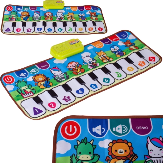 Discover the fun musical piano play mat with animals that develops children’s hearing, rhythm, and motor skills. With its large 79 × 31 cm surface and sensitive touch keys, it’s ideal for playful learning. The mat offers easy controls, colorful design, and runs on 3× AA batteries (not included). Suitable for children aged 3 and up.