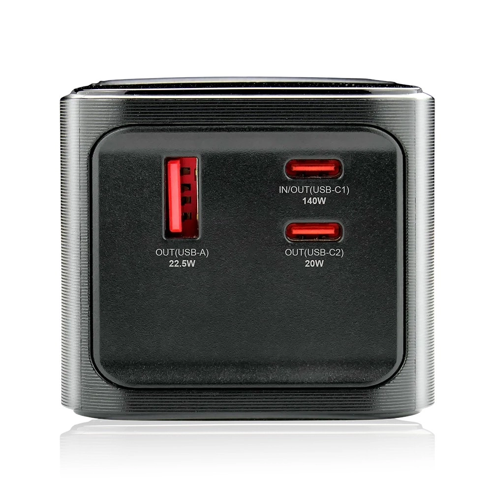The main USB‑C port (C1) delivers a full 140 W even while charging other devices simultaneously. Perfect for laptops and demanding devices.