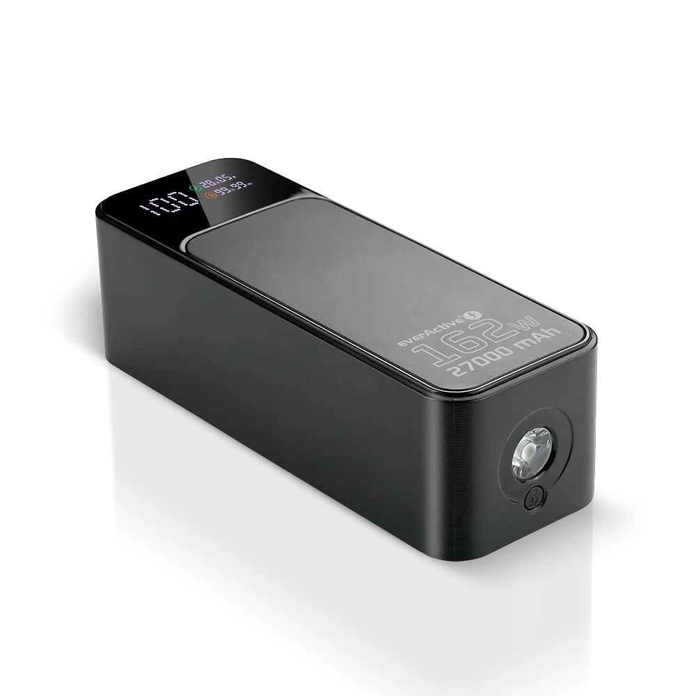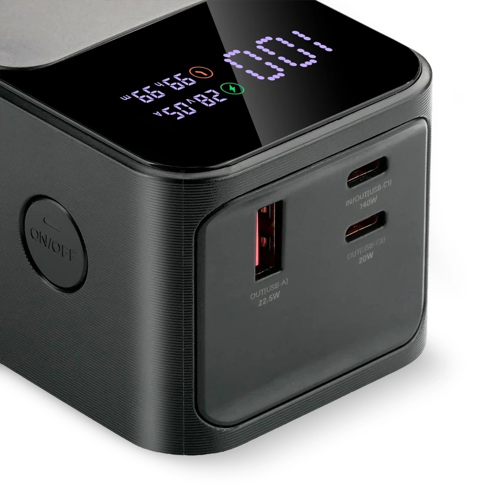 This premium power bank is engineered for maximum flexibility and performance. The main USB‑C (C1) port outputs up to 140 W even when charging other devices at the same time, powering laptops and power‑hungry electronics without compromise. A total output of up to 162.5 W ensures rapid replenishment for multiple devices at once.