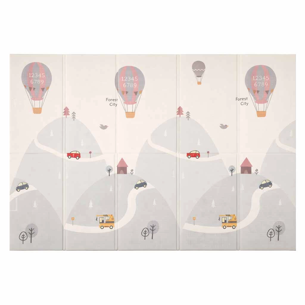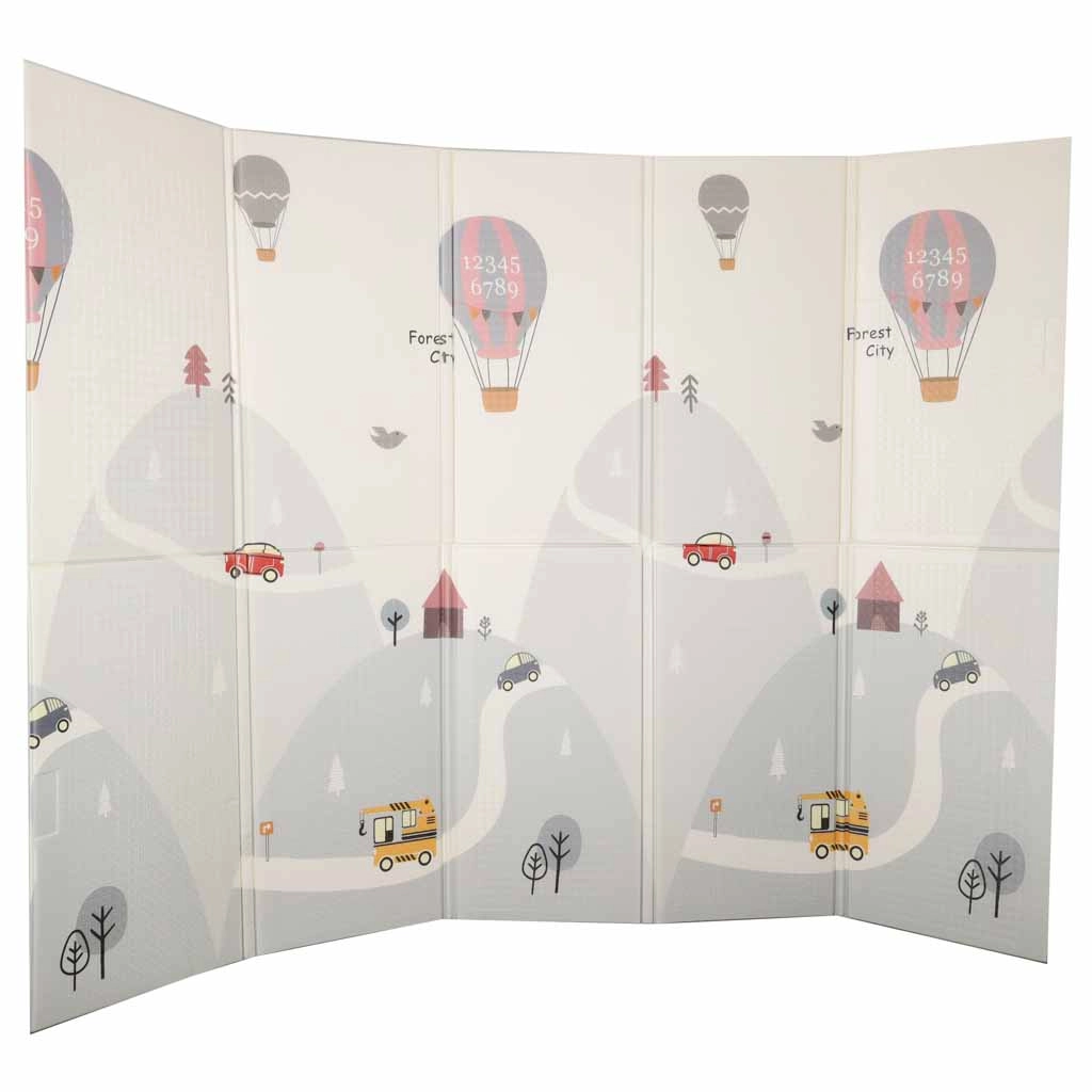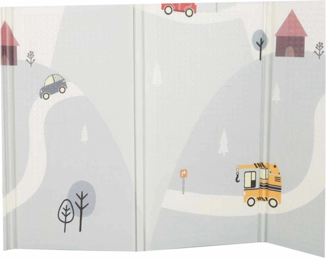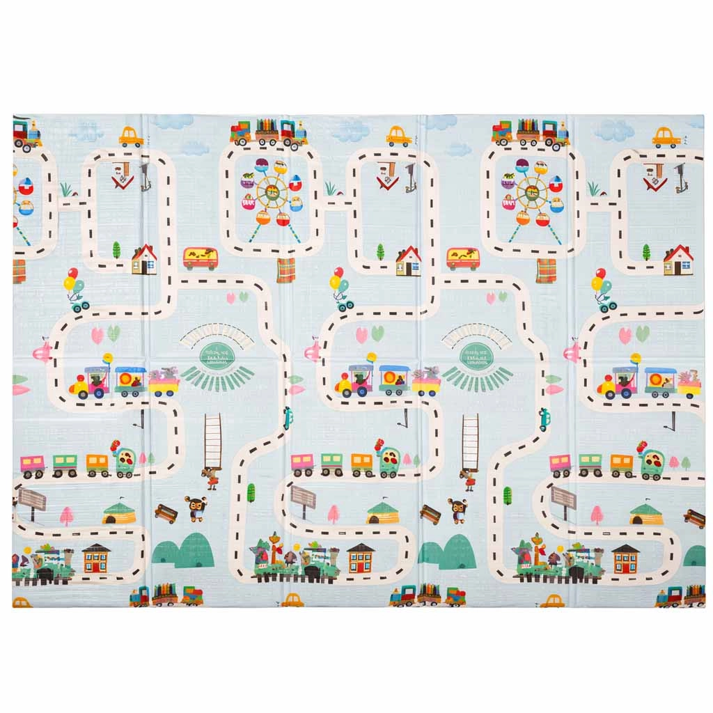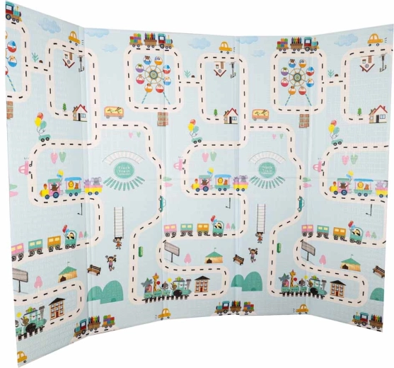 This high-quality foam mat is designed for safe and comfortable everyday play. The elastic, soft layer effectively absorbs falls, jumps, and those first tentative movements, while the non-slip, lightly textured surface ensures floor stability. The double-sided print with a streets and town motif on one side and a subtle pastel landscape pattern on the other encourages imagination and blends seamlessly with modern interiors.
