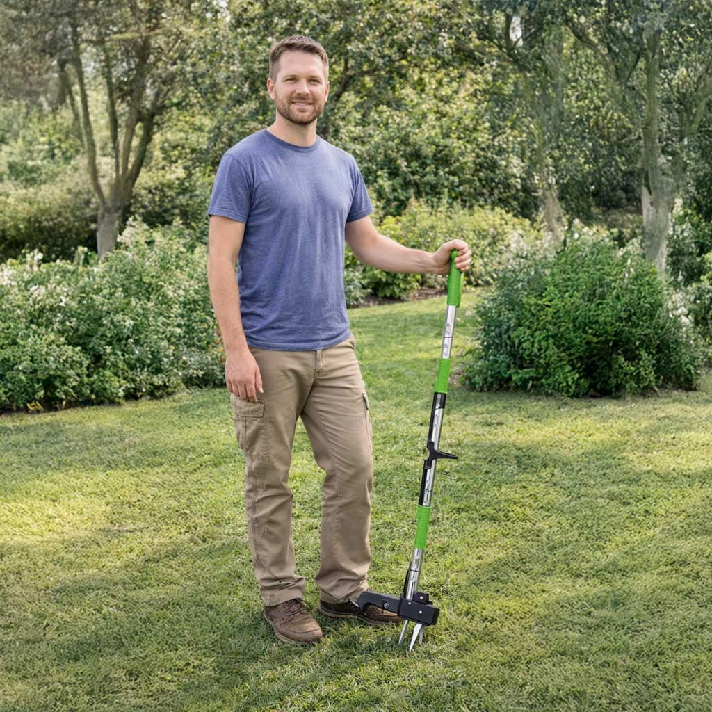 Experience comfortable, effective weed removal without chemicals. The LUARO telescopic weed puller lets you work upright, protects your back, and reaches deep roots. Sharp claws firmly grasp the plant, lift it easily, and pull it out even from compacted soil.