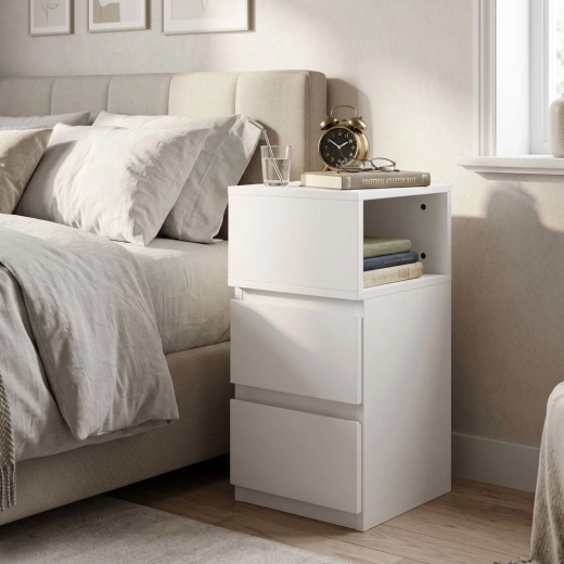 Store everything you need: two spacious drawers for clutter-free organization and a top open compartment for books, glasses, or your phone within reach.
