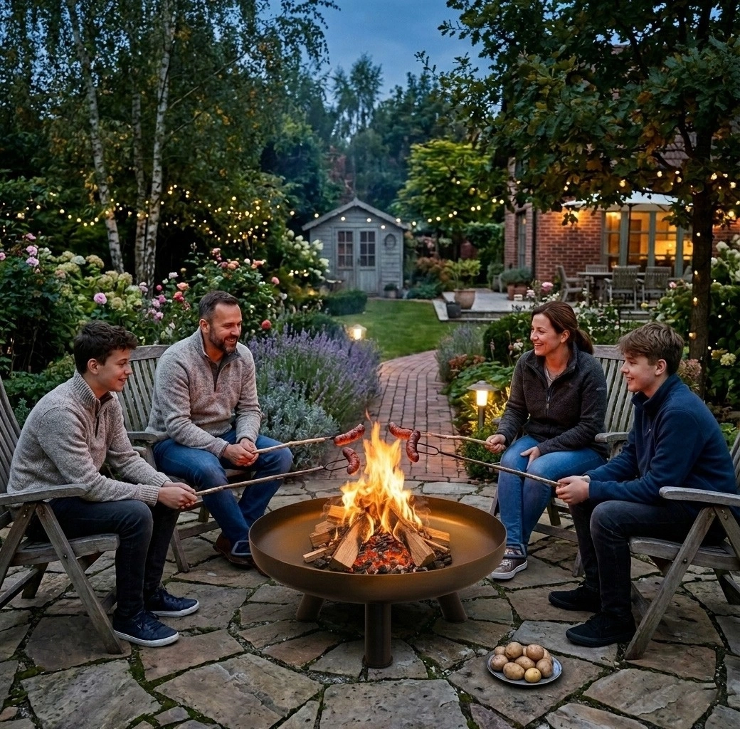 The stable three-legged base raises the bowl off the ground, improving air circulation, protecting the surface beneath the fire pit, and increasing safety. The fire pit is suitable for year-round use—from summer evenings to winter gatherings. The ash can also be ecologically reused as a garden fertilizer rich in minerals.