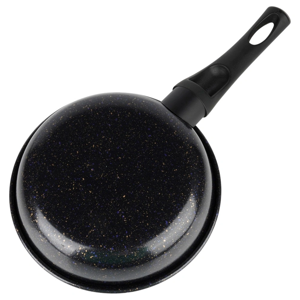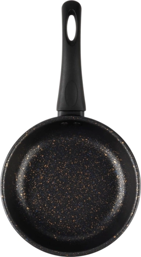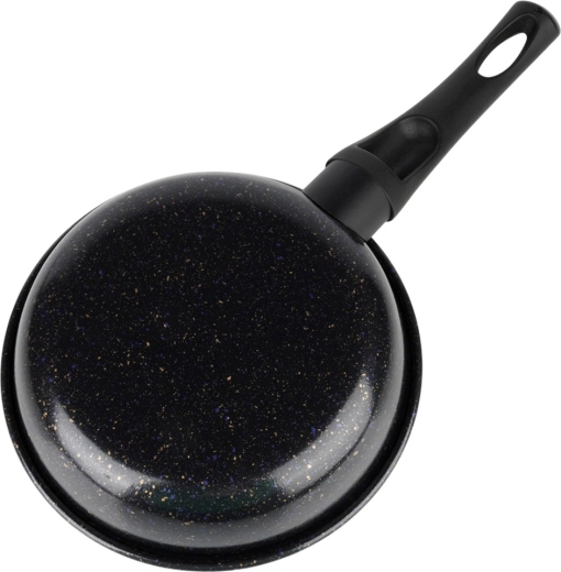 Compact 16 cm granite frying pan from the BASIC LINE, ideal for quick frying and sautéing with minimal fat. Thanks to the non-stick surface, food doesn’t burn and maintenance is easy – the pan is dishwasher safe. The ergonomic heat-resistant handle provides a great grip, and a practical hole allows hanging. Suitable for gas, electric, and ceramic cooktops (not suitable for induction).