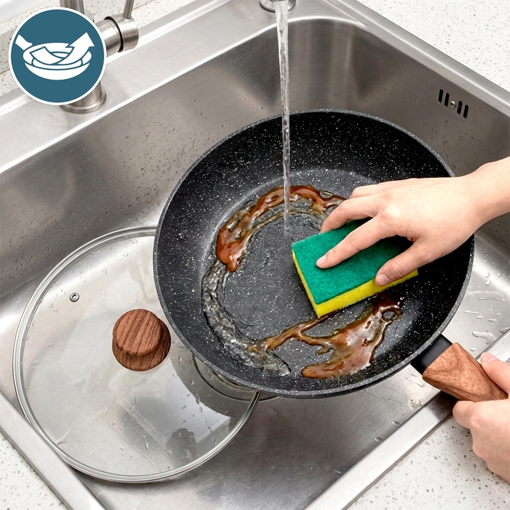 The multilayer granite coating prevents sticking and makes cleaning easy. Ideal for healthier meal preparation without excess oil.
