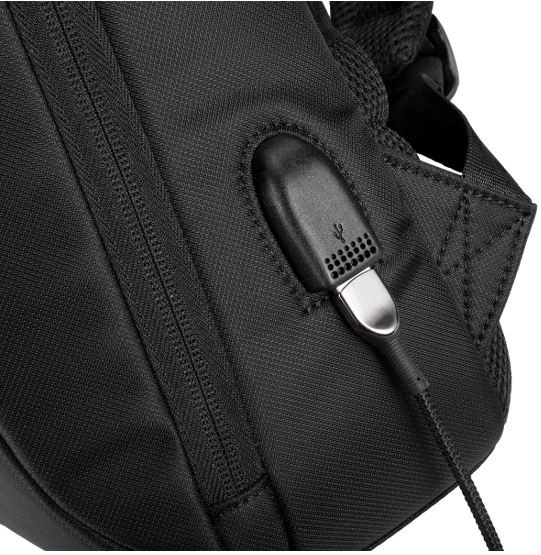 For travel comfort, the shoulder straps and back panel are equipped with breathable mesh that improves airflow and reduces back perspiration. Reflective elements increase visibility after dark, and the luggage pass-through allows easy attachment to a suitcase’s telescopic handle. A practical external USB port makes on-the-go charging easier (power bank not included).