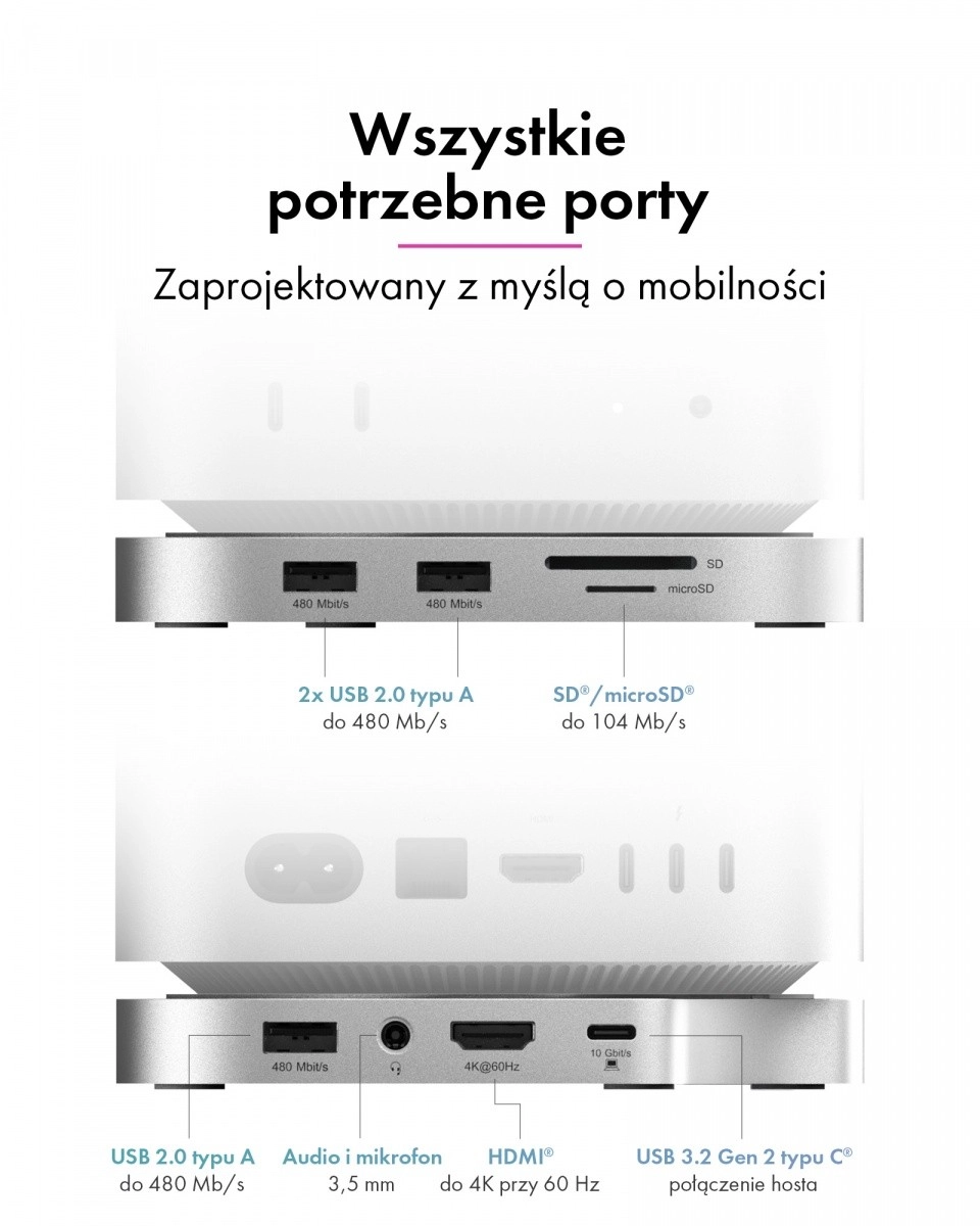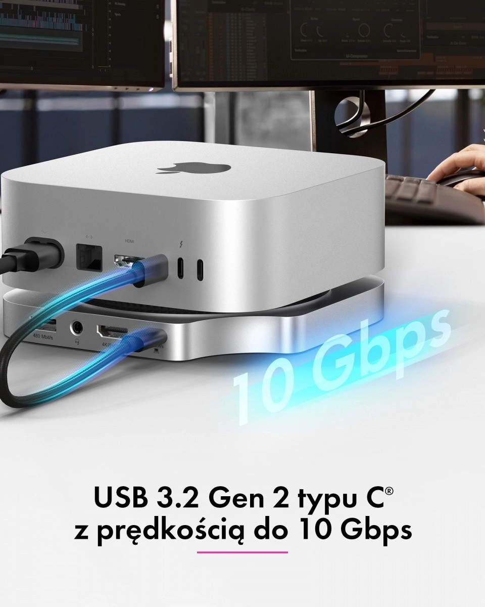 The docking station follows the style, dimensions, and color of the Mac mini M4, making it feel like an integral part of your setup. It tidies your workspace, improves ergonomics, and brings frequently used ports right to the front—quickly, clearly, and without dongles.