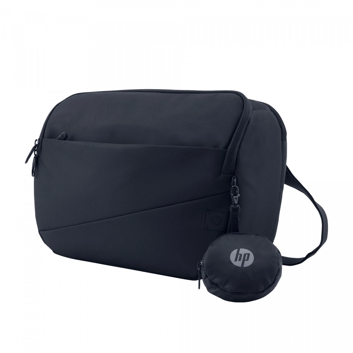 The lightweight and durable HP Creator single-strap sling bag for 13.3" laptops keeps your gear safe and within reach. It offers versatile organization with removable compartments, a waterproof cover for rain protection, and security features like an RFID-blocking pocket and anti-theft zippers. The sustainable material made from 100% recycled plastic ensures both style and responsibility.