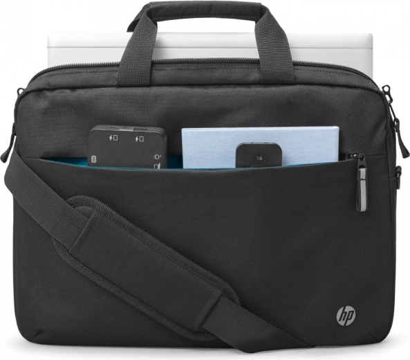 The HP Professional 14.1" bag is made from main fabric sourced from 100% ocean-bound plastics. Labels, drawstrings, and padding are made from recycled, biodegradable materials. New color accents in the lining and zipper pulls add a modern look that complements both work and casual outfits.