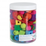 Colorful wooden maxi beads are the perfect tool for children from 3 years old who want to practice their dexterity and have fun at the same time. This set includes 92 pieces of various shapes and colors, which can be threaded onto the included sturdy string.