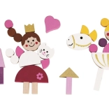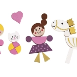 Colorful wooden magnetic pieces are easy to arrange into characters, animals, and castles. Children create their own fairy tales and scenes exactly as they imagine.