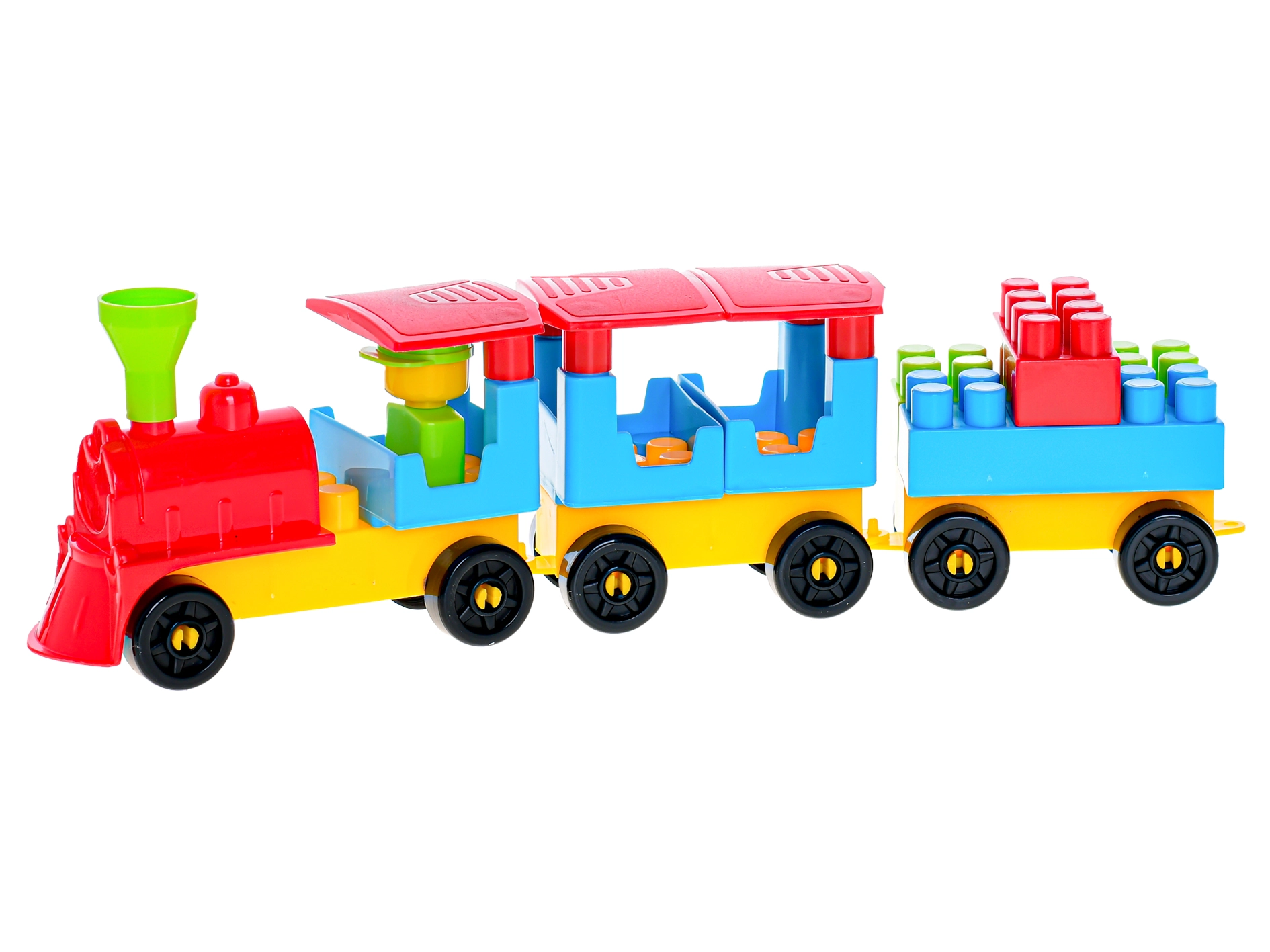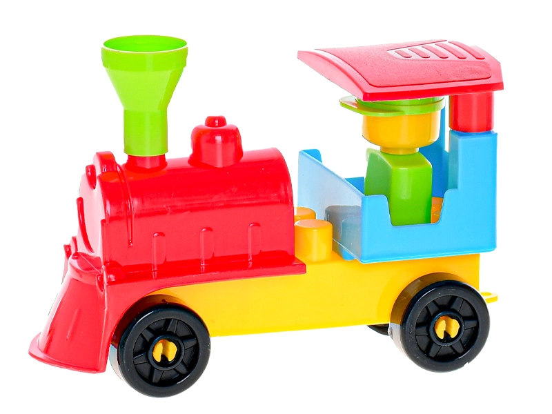 A simple piece-connecting system lets children build the locomotive and two carriages without adult help and enjoy the satisfaction of a finished project.