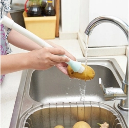The flexible faucet brush turns your tap into a handy helper for quick and hygienic washing. The silicone attachment ensures a secure fit, while the curved head with bristles easily removes burnt-on and dried food residues.