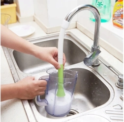 A practical faucet brush attachment that makes everyday kitchen cleaning easier. Thanks to the flexible silicone head, it fits most faucets and lets you scrub pots efficiently, as well as pans and lids. The dense bristles handle stubborn dirt and reach hard-to-access areas.