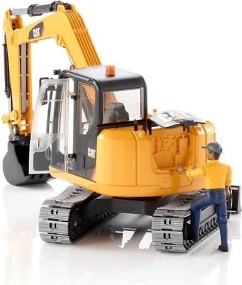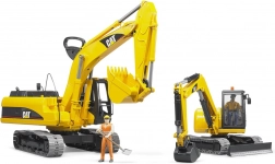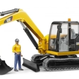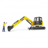 Become a real excavator operator! The Bruder mini excavator licensed by CAT impresses with its detailed workmanship and functionality—from the rotating cab and articulated boom with bucket to the moving tracks. A worker figure with movable limbs is included, so you can head straight to the site and start digging foundations or loading rubble.