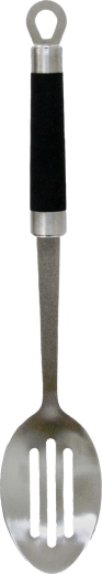 The elegant TORO Victoria salad serving spoon is ideal for everyday dining as well as special occasions. The combination of stainless steel and a rubberized handle ensures a comfortable, secure grip. Thanks to its generous 34 cm length, it protects hands from heat and steam, the practical hanging hole makes storage easy, and its dishwasher-safe design saves time.