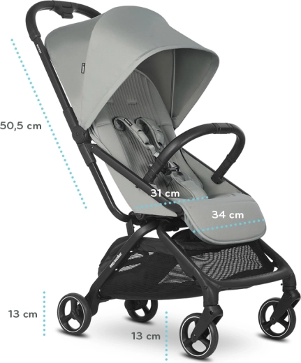 Rockey S is the lightest model in the EASYWALKER ROCKEY family – it weighs just 7 kg and folds and unfolds fully automatically into a super-compact package that meets carry-on luggage dimensions. Yet it offers a surprisingly spacious seat with a full flat recline, making it ideal for longer naps and comfortable travel.