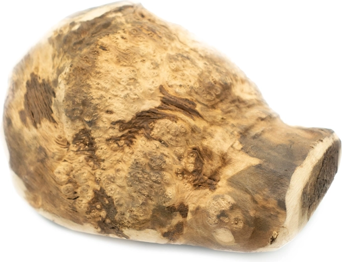The solid heather root with an irregular grain is exceptionally durable and provides dogs with long hours of chewing without splintering.