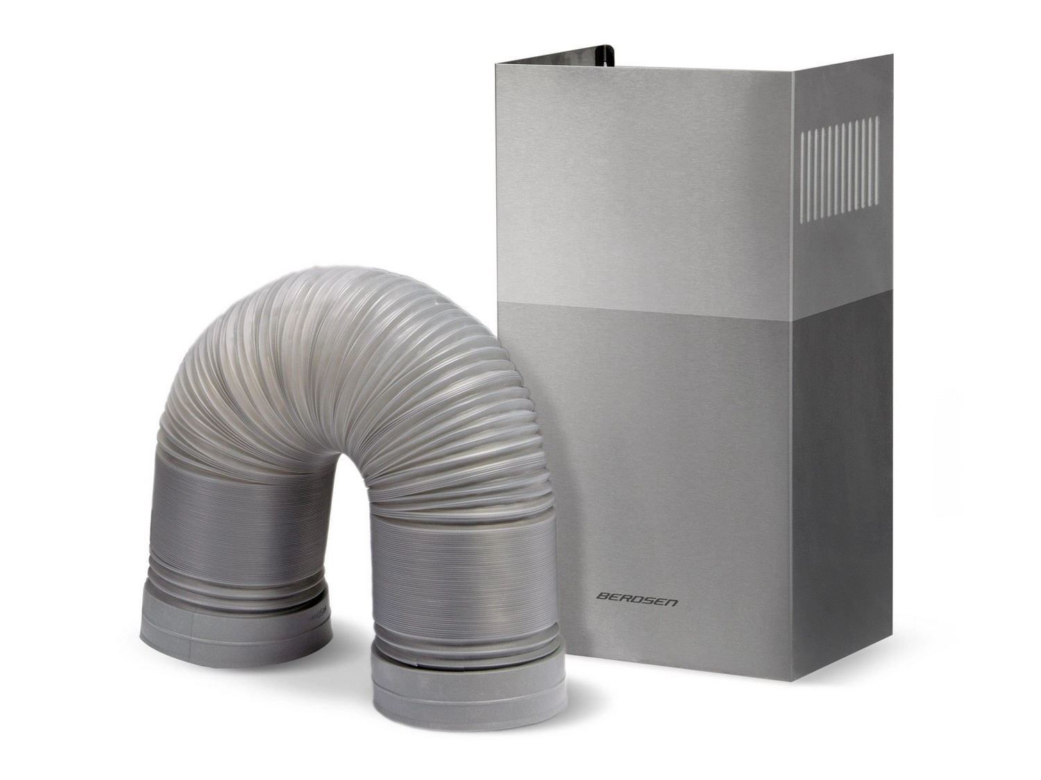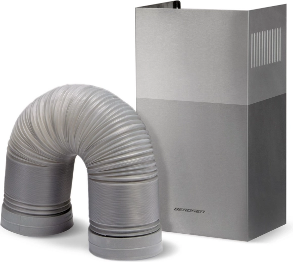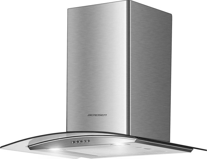 The appliance can operate as a ducted extractor or as a recirculating hood with optional BERDSEN BT-S carbon filters (not included). Mechanical button controls are simple and durable, while the 5-layer aluminum grease filter ensures easy maintenance and high filtration efficiency.