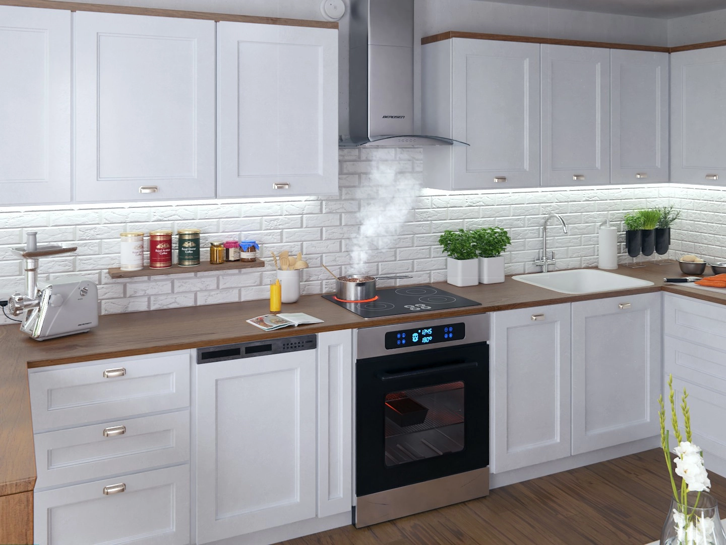 Two LED light points (2 × 1.5 W) provide bright and pleasant illumination of the cooking area with minimal consumption and long lifespan.