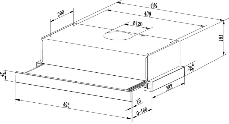 - High efficiency — up to 200 m³/h, pull-out panel for a larger intake area.