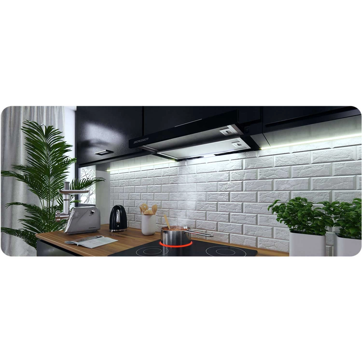 The elegant built-in telescopic BERDSEN hood efficiently removes steam, odors, and grease right at the source. The pull-out strip increases the intake area and boosts efficiency, while the compact body remains hidden in the cabinet. You will also appreciate the economical 2 W LED lighting, which perfectly lights the cooktop.