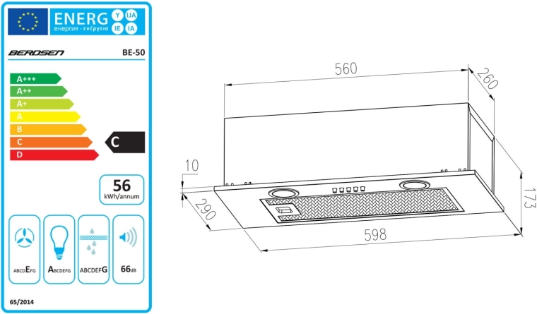Cleaner air and less grease on cabinets are ensured by the reinforced 5-layer aluminum filter. The hood can be used in ducted mode or for recirculation with an optional carbon filter BE-B (not included). Simple push-button controls let you choose from three power levels as needed.