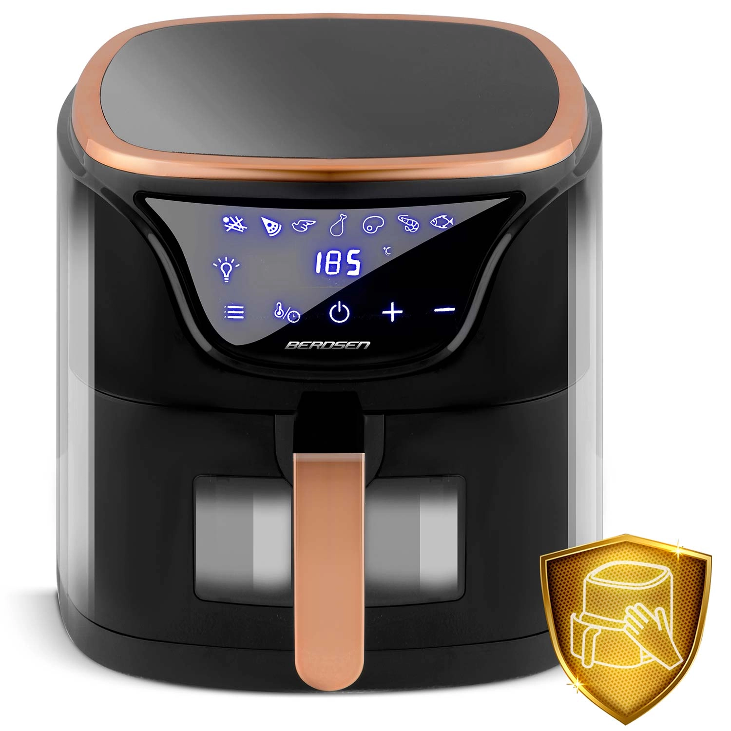 Enjoy your favorite fried treats more healthily with the BERDSEN 5 L air fryer. Thanks to hot air circulation, it cooks with up to
