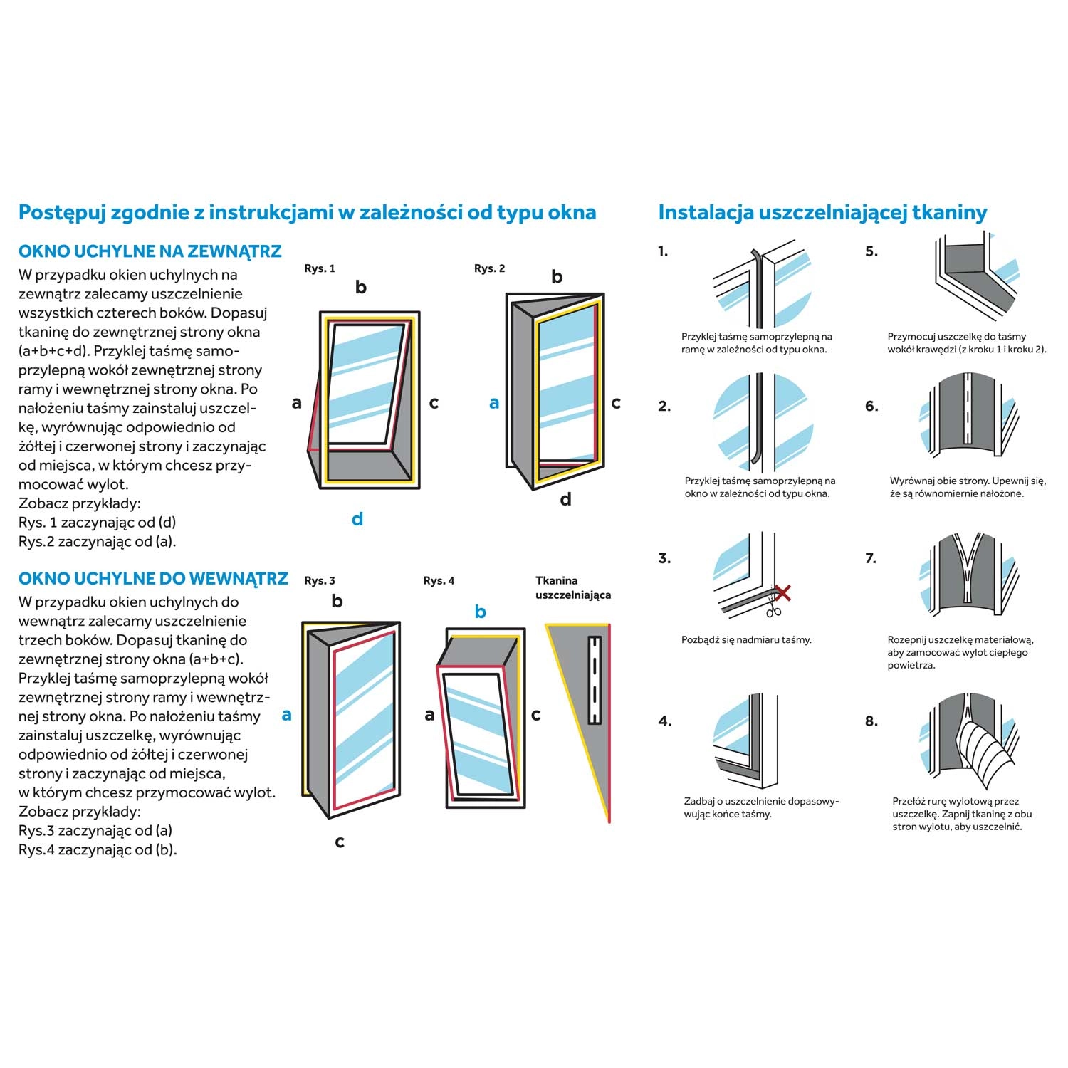 - Sealing fabric, self-adhesive tape with hook-and-loop fastener, installation manual