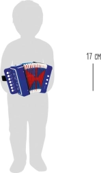 This blue children’s accordion is a great start for young beginners. Thanks to its lightweight design and practical strap, it’s comfortable to hold; the colorful bellows and clearly marked buttons make first playing attempts easy. Children develop their hearing, rhythm, and fine motor skills while enjoying fun, creative play.