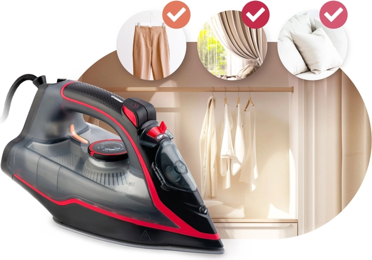 - Steam and temperature control – optimal settings for delicate and heavy fabrics.