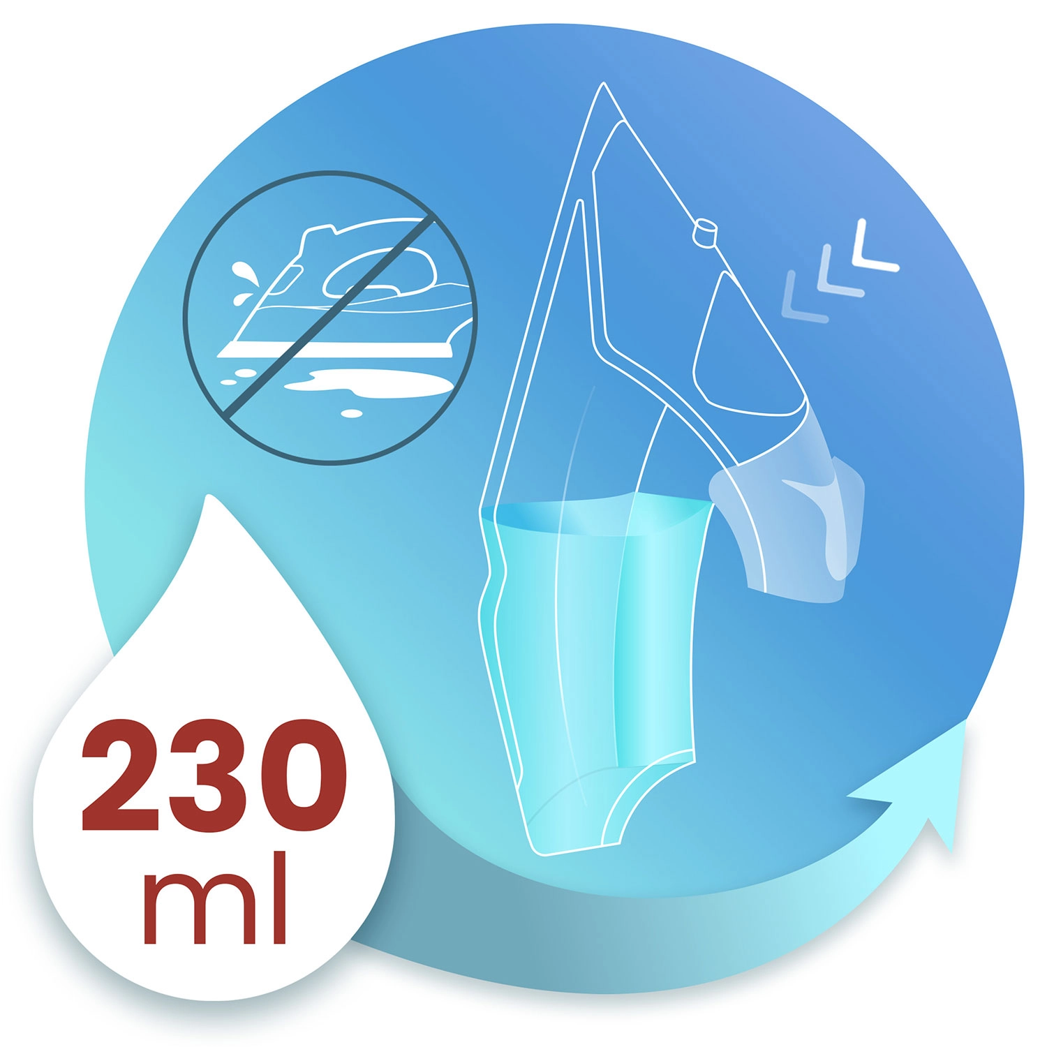- 230 ml tank and sprayer – longer ironing with fewer refills and precise moistening.