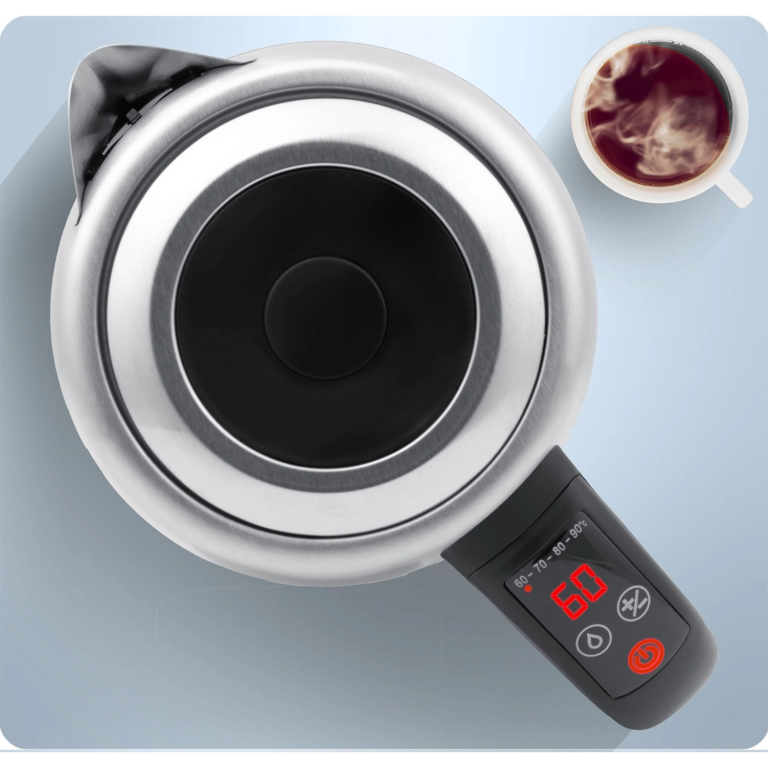 Select 60/70/80/90/100 °C or fine-tune in 5 °C steps using the +/- buttons on the handle. Ideal for green tea, coffee, and drinks for children.