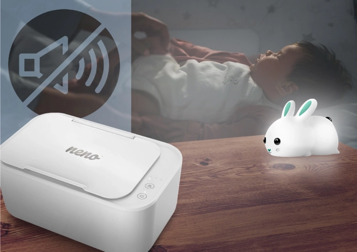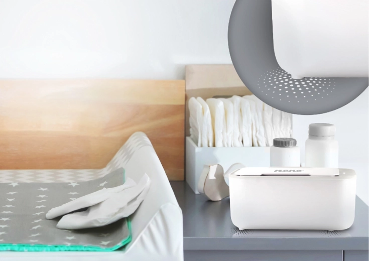 Neno Calor is a reliable warmer for baby wet wipes that speeds up and softens every diaper change. Thanks to three temperature modes (30–55 °C), you can easily adapt the warmth to your baby’s needs. The touch panel provides intuitive control, and the non-slip finish protects the device from accidental tipping.