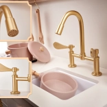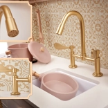• Realistic details: metallic gold faucet, hanging rail with hooks, rattan effect on the oven door.