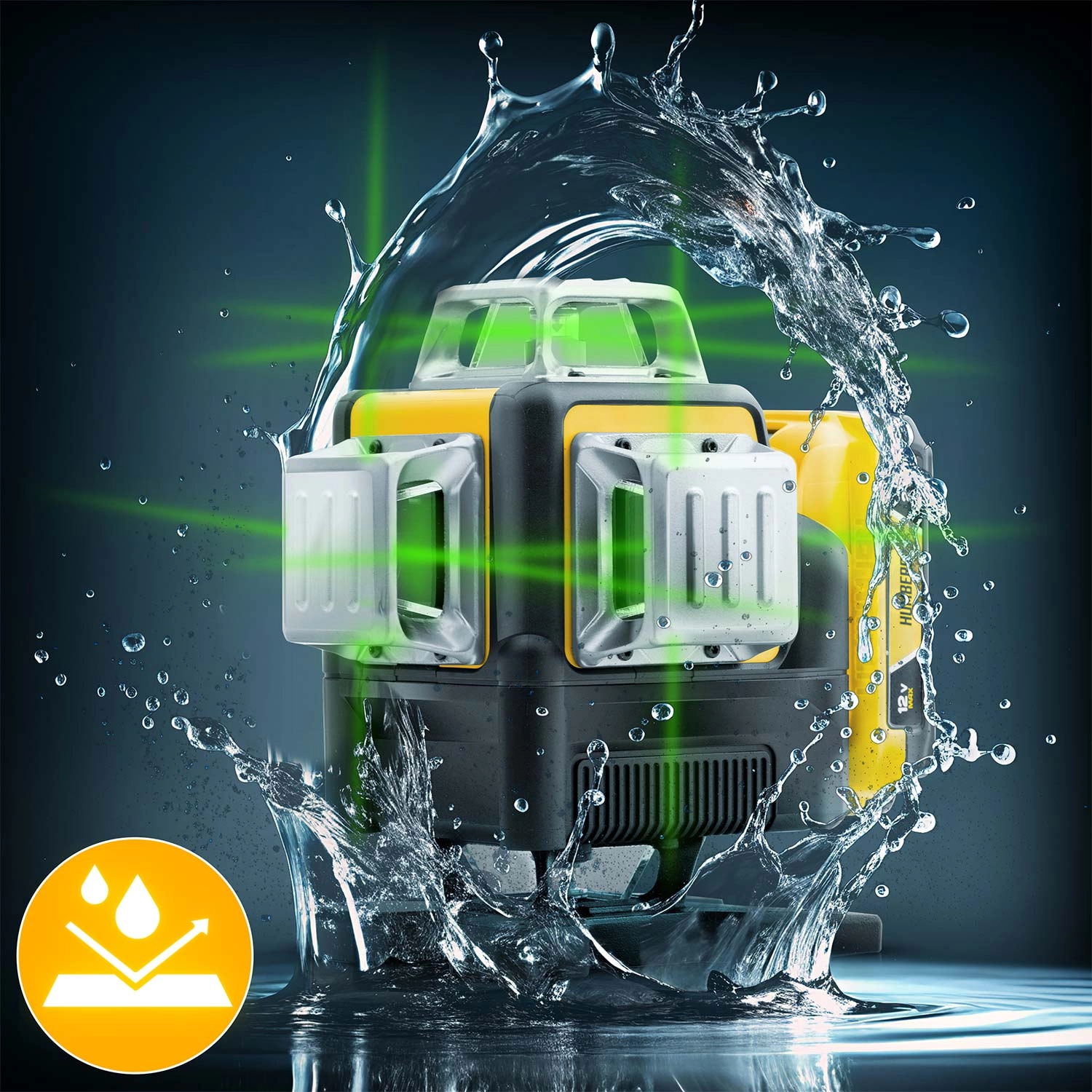 The bright 515 nm green laser is easier to see indoors and in daylight. 16 lines across 4 planes enable precise layout of horizontal and vertical references throughout the room.