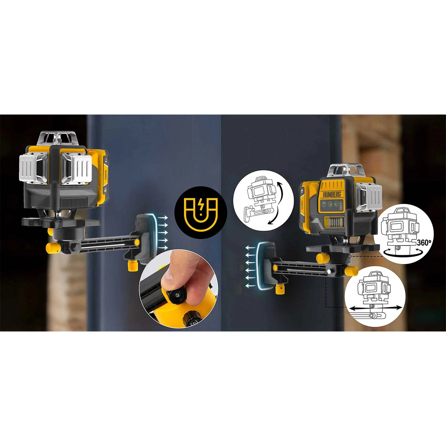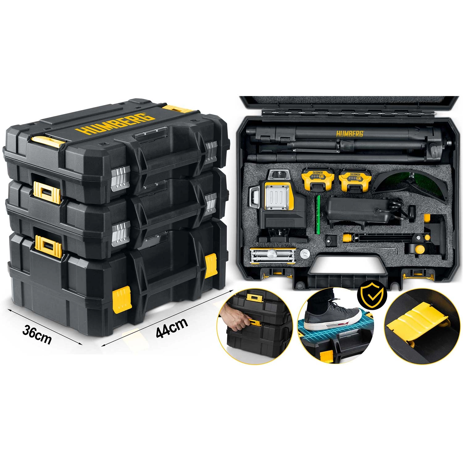 The HUMBERG HM-171 is a precise 4D laser level for demanding professionals and DIY users. The green beam (515 nm) is highly visible even in bright light, and 16 lines allow fast, detailed alignment of horizontals and verticals in a single room. Thanks to self-leveling, you work without time-consuming setup, with the confidence of a perfectly level line.