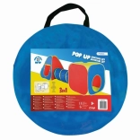 A fun 3-in-1 pop-up tent set transforms any room or garden into a kids' playground. It includes a cube tent, a tunnel, and a pop-up tent that can be used together or separately. Quick, effortless setup, a lightweight construction, and easy storage ensure comfortable play at home and outdoors.