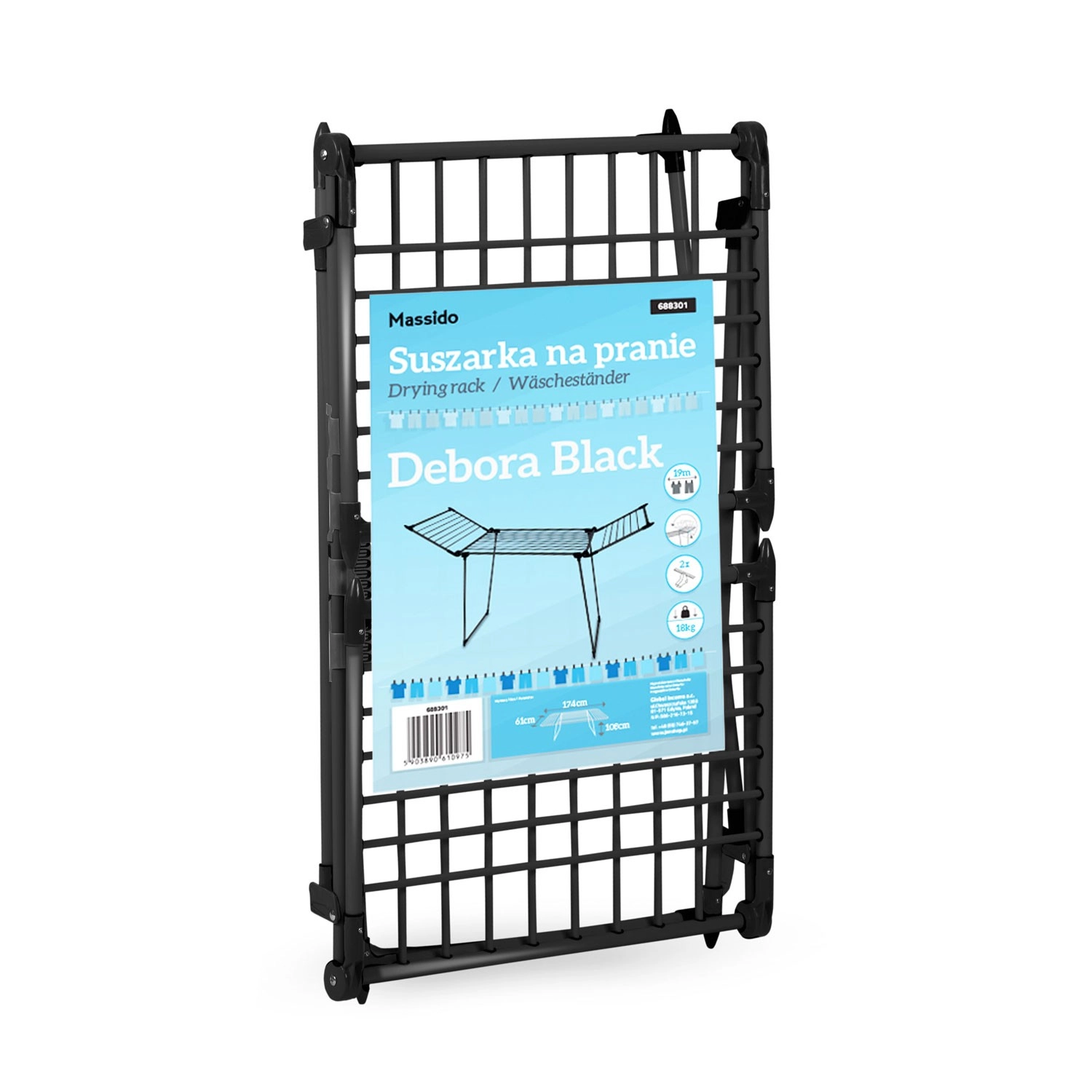 Keep your home organized with the DEBORA SLIM BLACK dryer. The stable metal frame in an elegant black finish fits perfectly into a modern household, while the thoughtful design with folding wings provides plenty of space even for larger loads. 19 meters of drying space comfortably handles shirts, towels, and bedding.