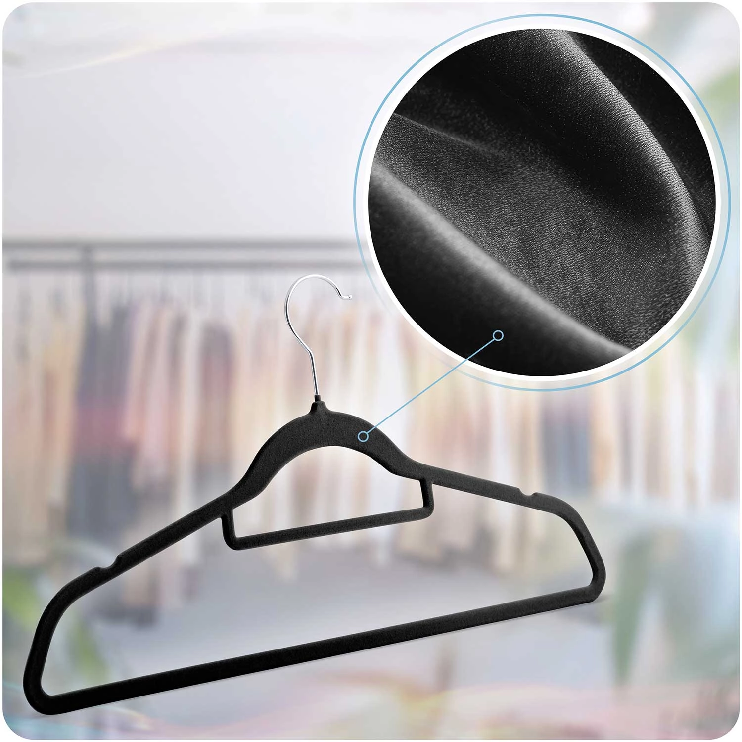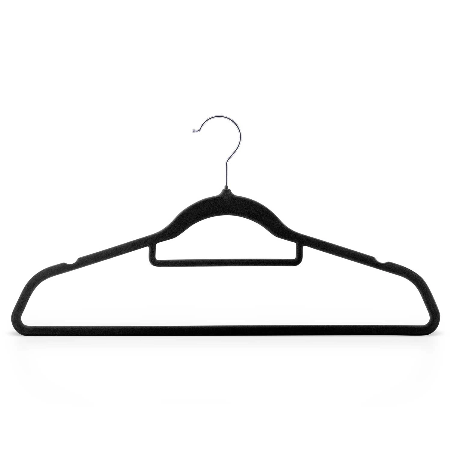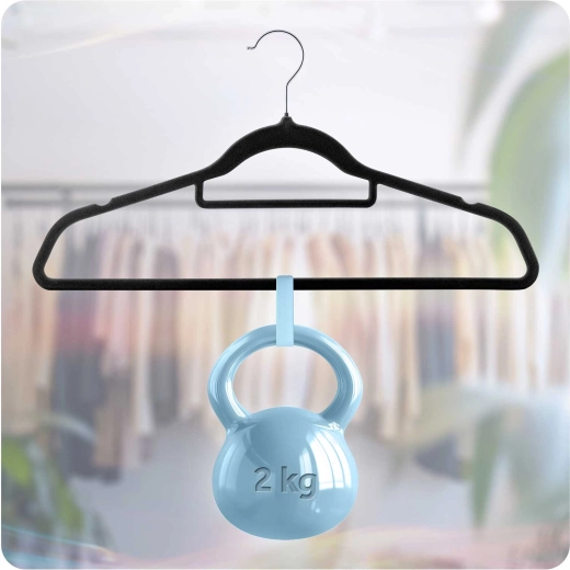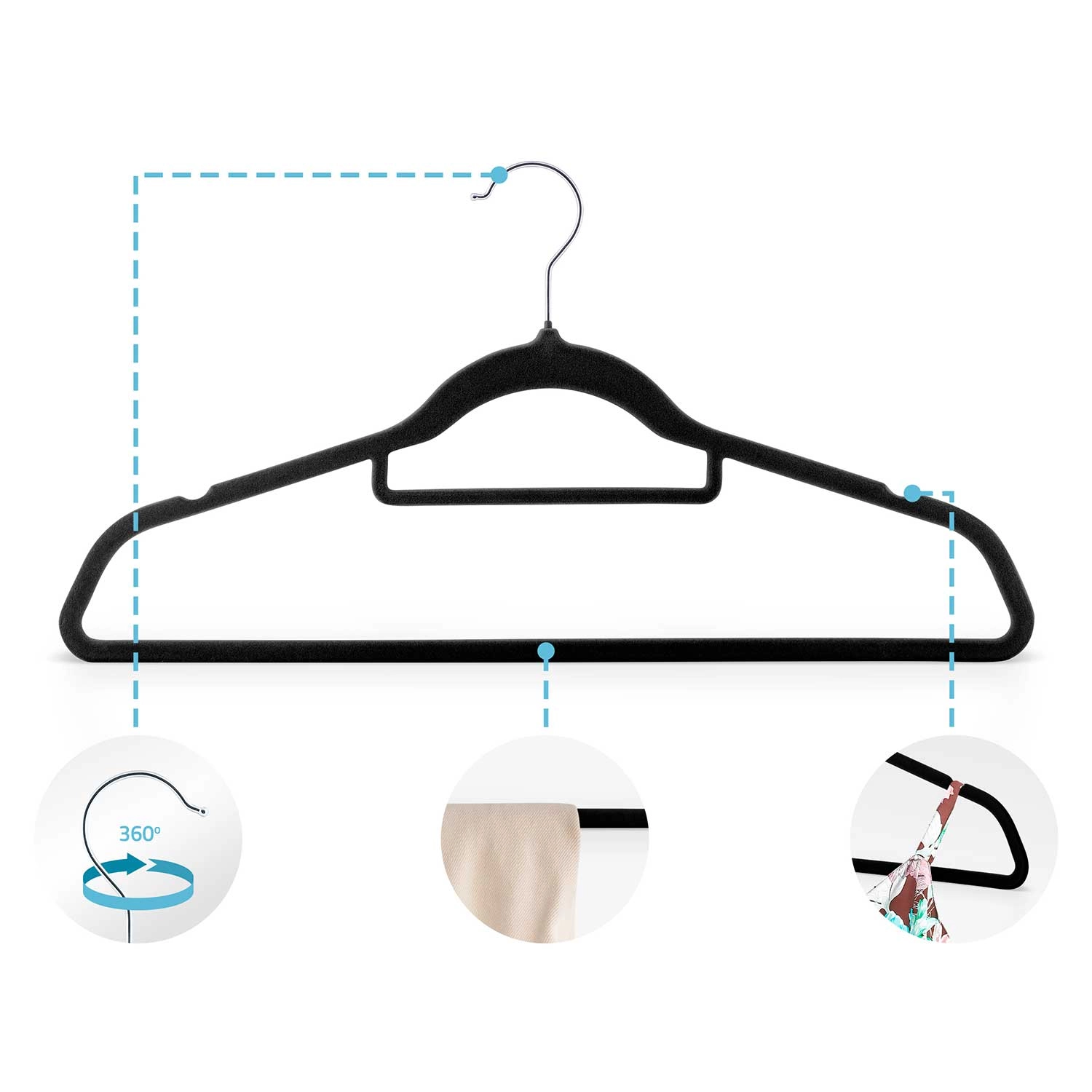 An elegant, sturdy hanger set that combines space-saving design with the assurance that your clothes stay put and free from deformation. The soft velvet protects fabrics and prevents slipping, while the sturdy PP core stands up to heavier coats or blazers. The hangers feature a rotating steel hook for easy sorting and access to garments.