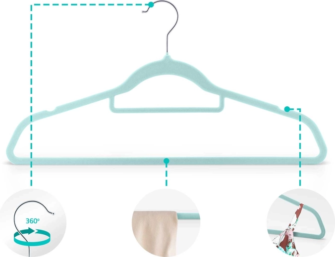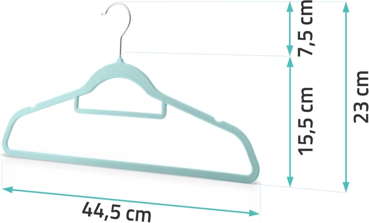 • Non-slip velvet – gentle on fabrics, prevents garments from falling.