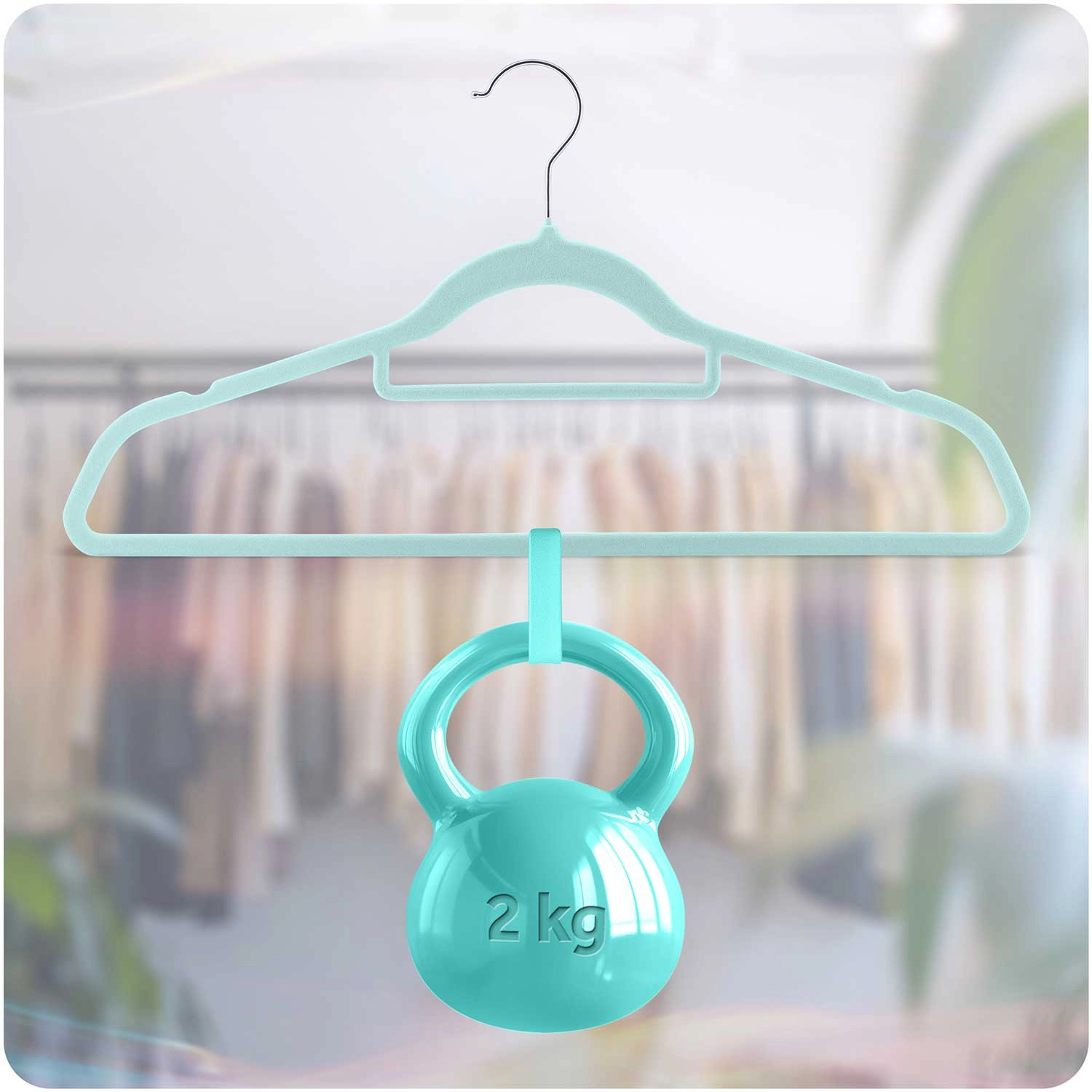The practical and stylish set of MASSIDO velvet hangers brings order and gentle care to your clothes. The soft velvet provides a non-slip surface that prevents shirts, dresses, and blazers from sliding, while the sturdy PP core maintains shape and won’t bend even under heavier garments.