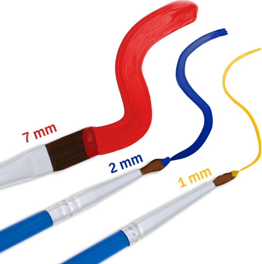 The brush set of 7 mm, 2 mm, and 1 mm lets you comfortably cover backgrounds, fill medium areas, and finish the finest details of the CORGI motif.
