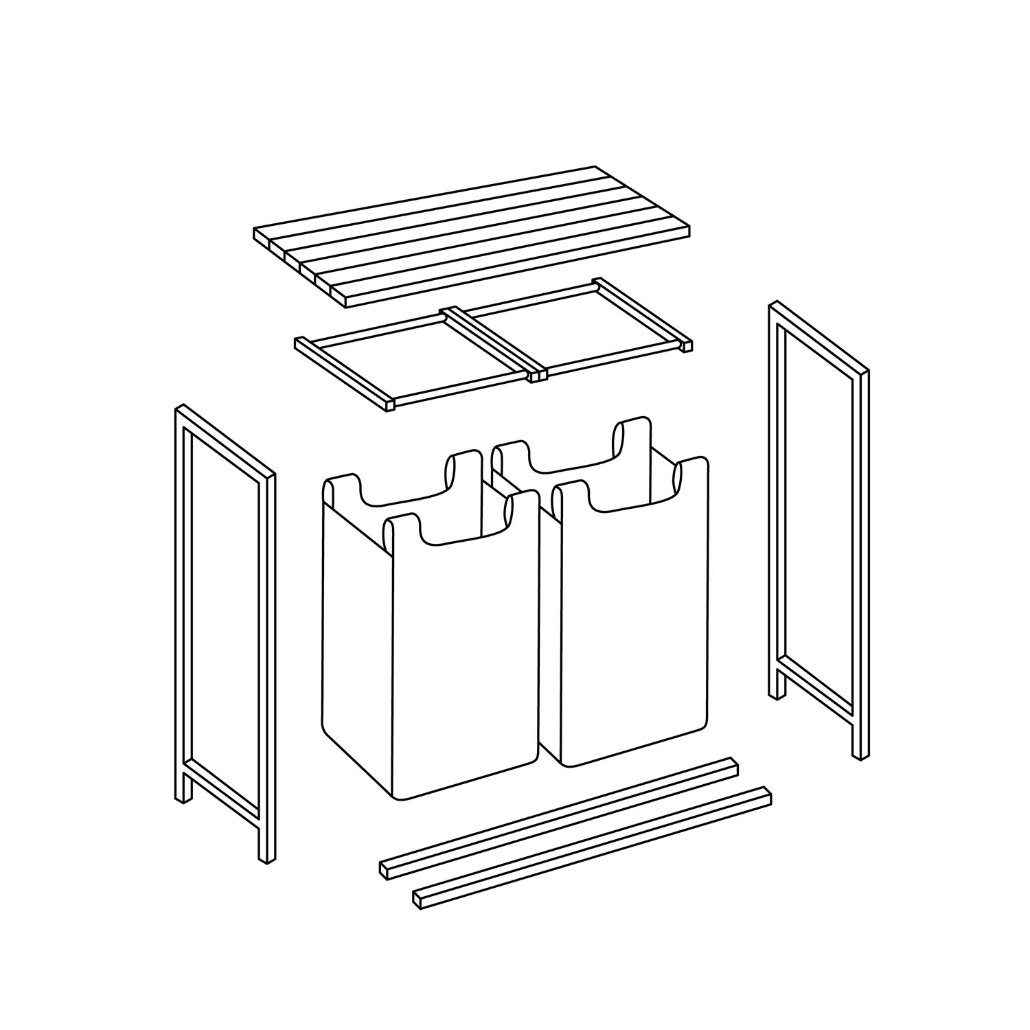 The powder-coated steel frame is resistant to corrosion, scratches, and abrasion, while the wooden board is moisture- and mildew-resistant. Removable liners with practical handles turn the hamper into a portable bag—just lift out and carry to the washer with no mess.
