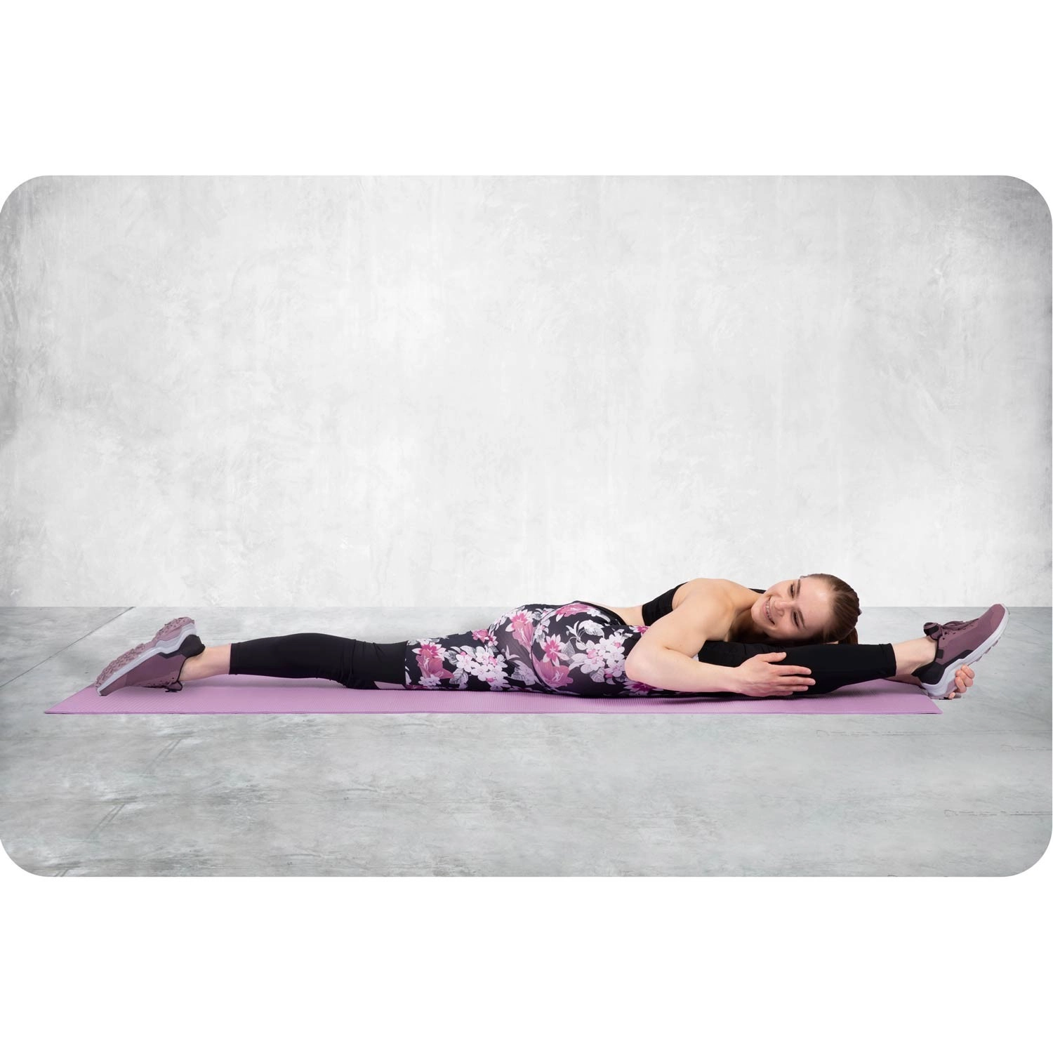 The textured surface increases grip for hands and feet and prevents the mat from sliding on the floor. Stability in poses and during dynamic sequences.