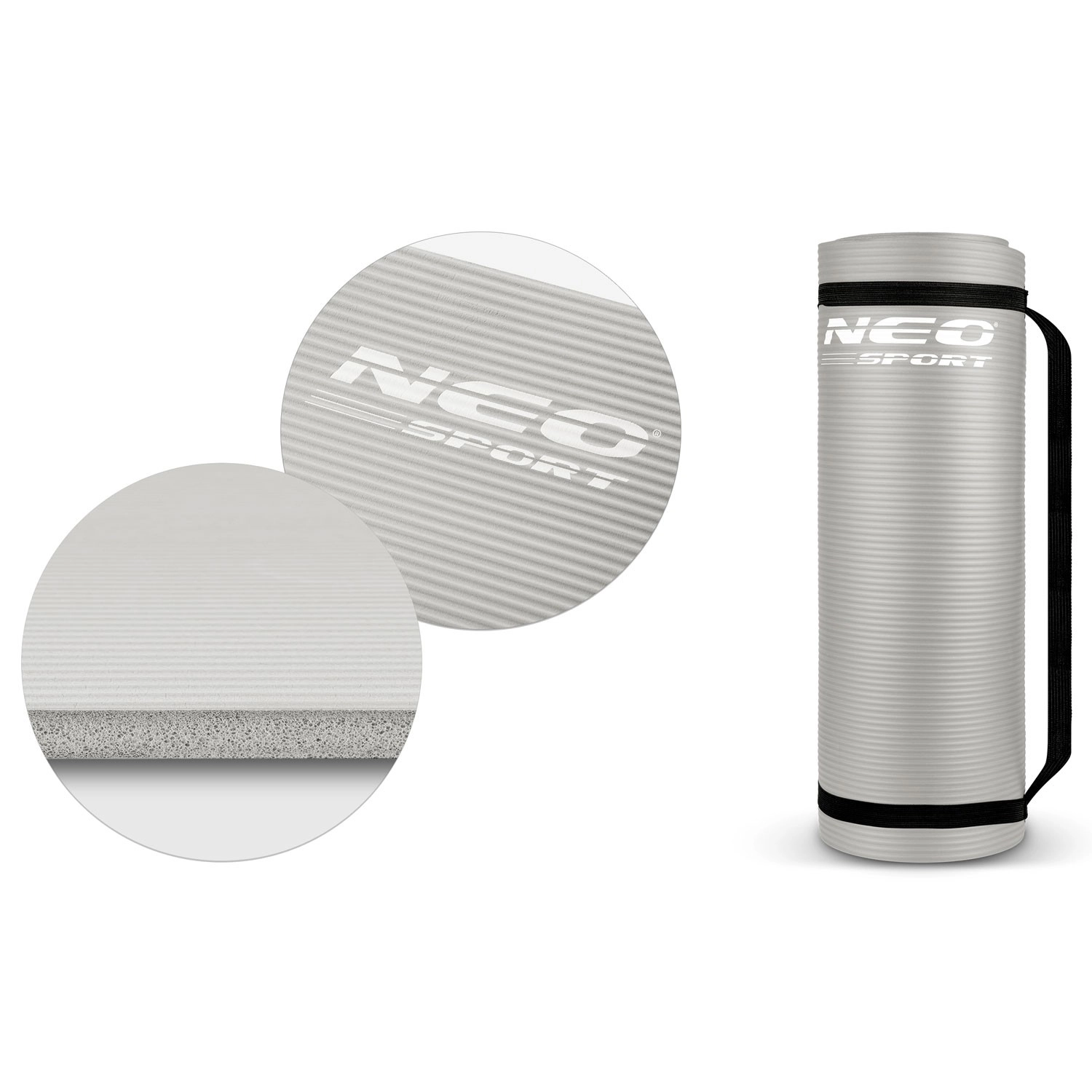 The universal NEO SPORT exercise mat in grey offers excellent cushioning, a non-slip surface, and everyday training comfort. Thanks to the NBR material, it is durable, water-resistant, easy to clean, and pleasant to the touch. Ideal for yoga, Pilates, fitness, stretching, and home workouts.