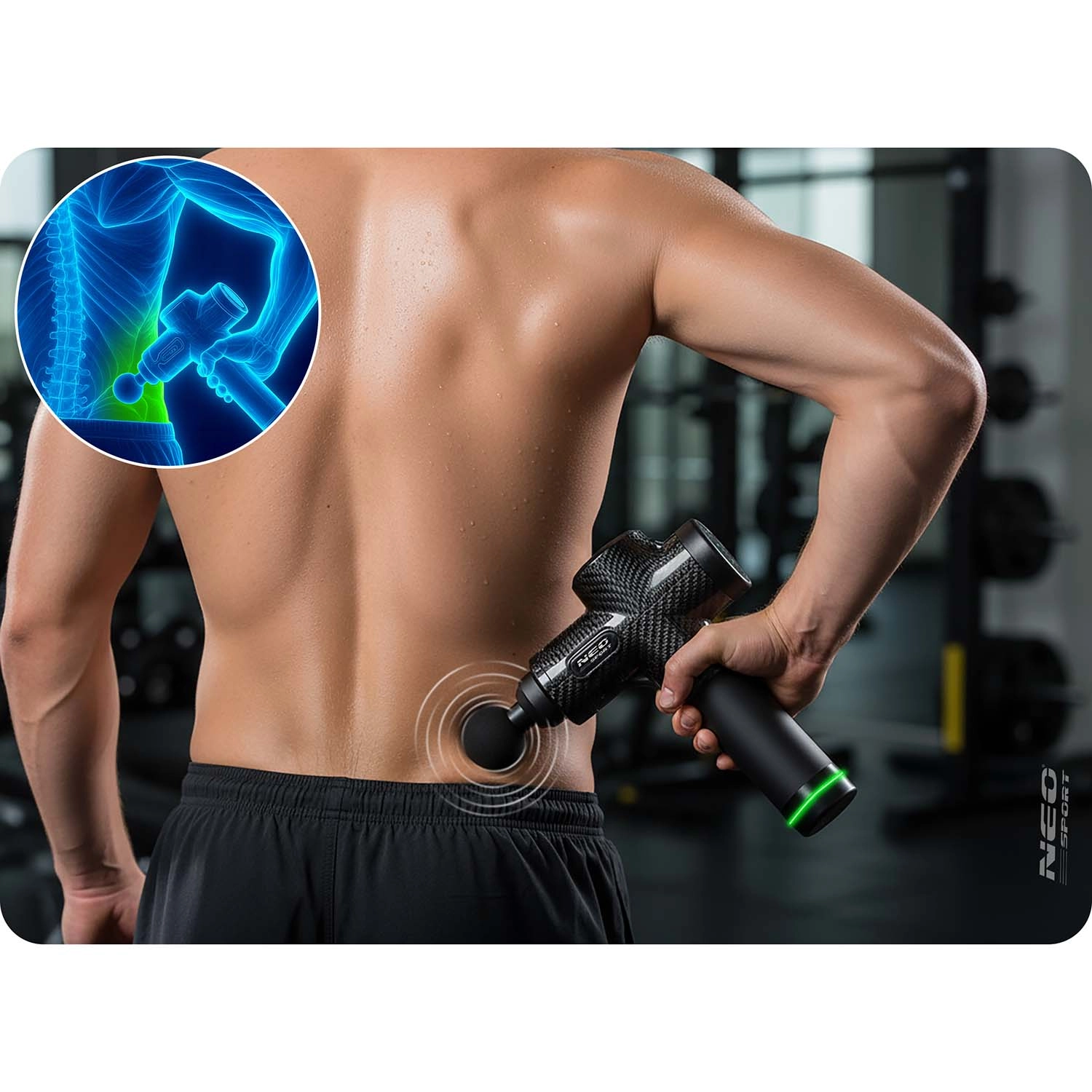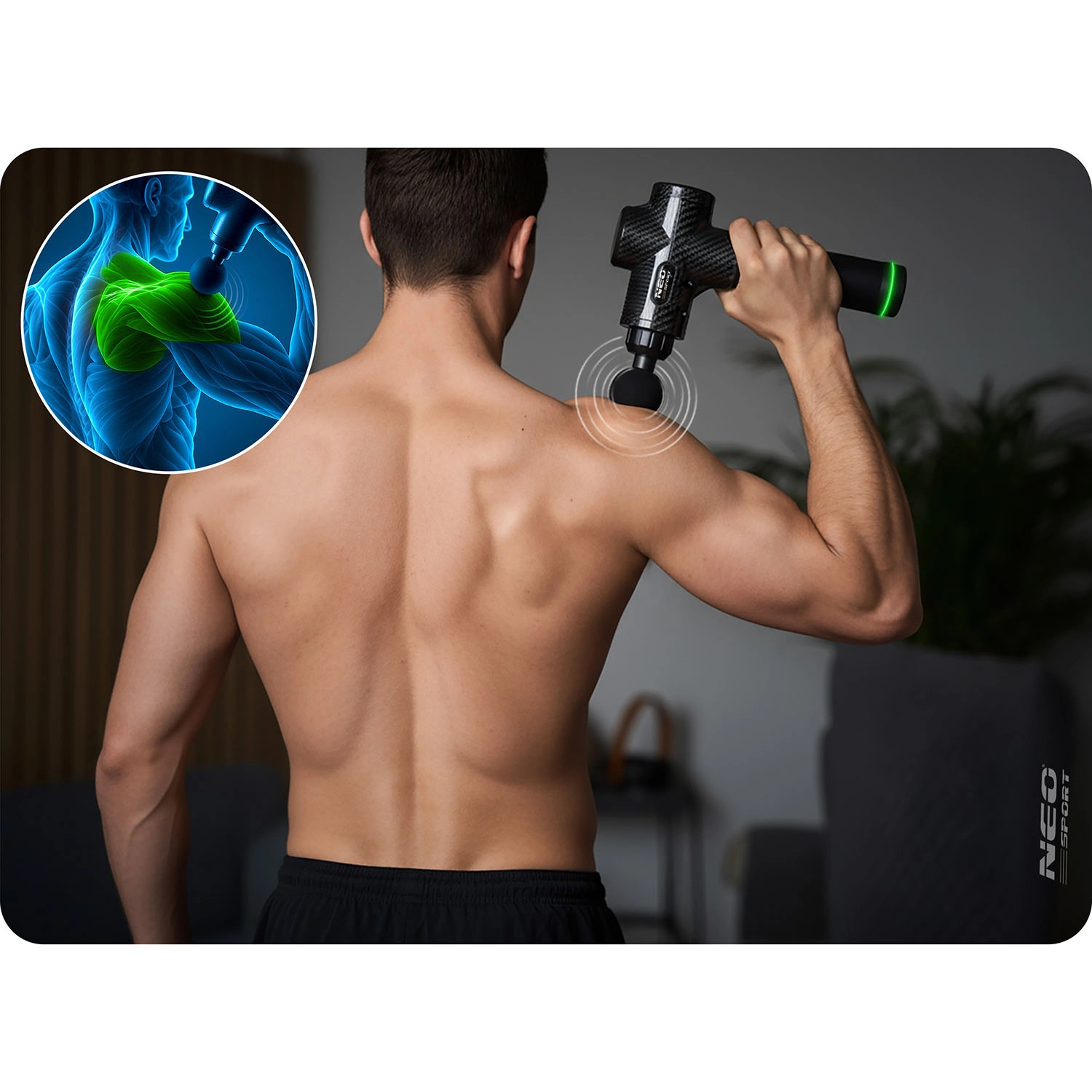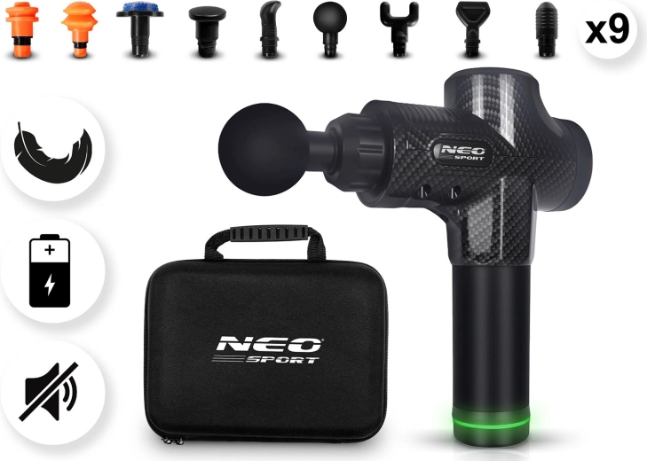 Discover effective tension relief with the NEO-SPORT NS-503 massage gun. It offers up to 30 intensity levels, 9 interchangeable attachments for different body areas, and a long battery life. Thanks to its ergonomic shape, cordless operation, and a practical carry case, it’s ideal for home, the gym, and travel. Safe use is ensured by overheat protection and high-quality workmanship that meets European standards.