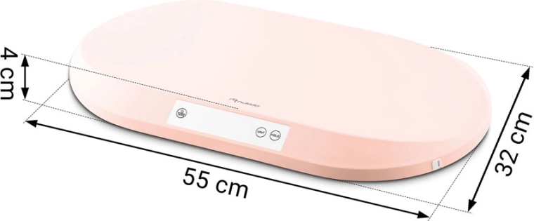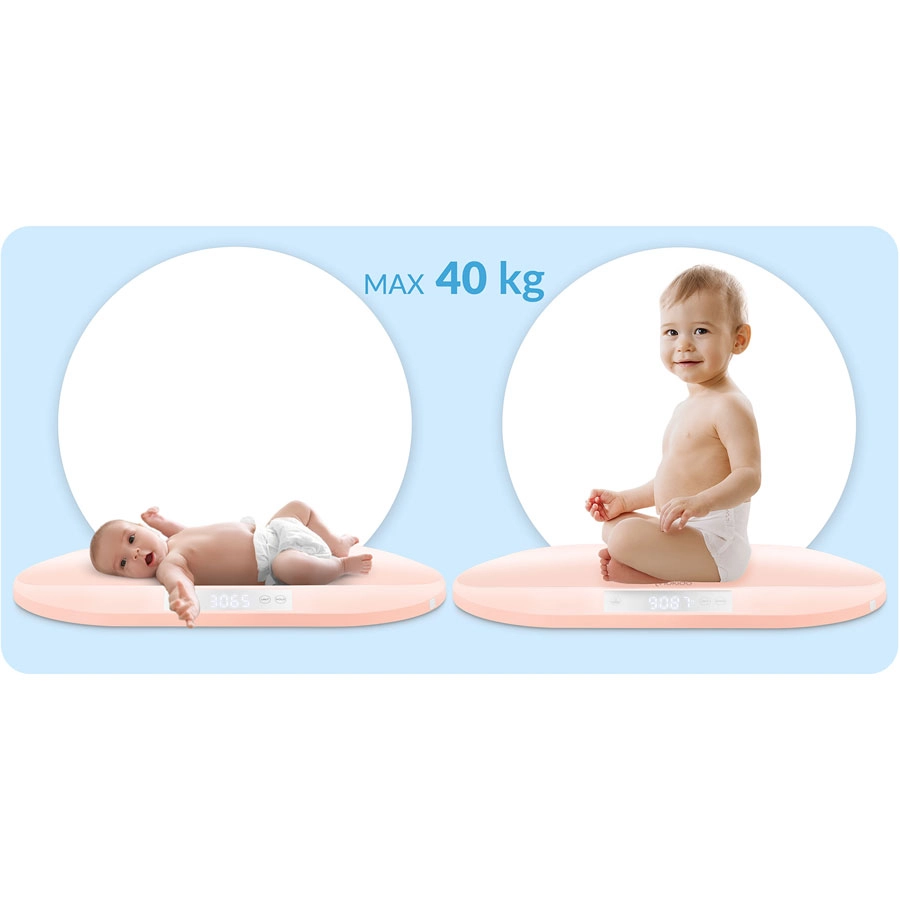 Reliable electronic scale for infants and children with top precision of 5 g, maximum capacity of 40 kg, and practical functions such as TARE, HOLD, and unit conversion (g, kg, oz, lb). Thanks to the large, easy-to-read LCD, ergonomic shape, and an integrated measuring tape for head circumference, you can easily track your child’s growth and healthy development at home. Certifications CE, RoHS, FCC, CPC, ISO9003, BSCI ensure safe operation.