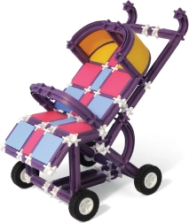 Discover the creative construction set SEVA Family – Stroll with 166 pieces in beautiful shades of purple, pink, and light blue. Children aged 4+ can build a baby stroller, a swing, a bench, and other park elements—perfect for developing imagination, fine motor skills, and creativity.