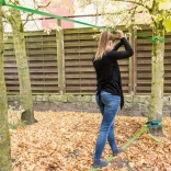 Slackline is a great activity that improves coordination and strengthens every muscle in the body. Installation is simple, you only need two trees in the garden or park, between which you stretch the strap. Beginners can use a guide rope for greater stability.